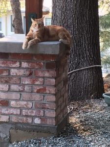 This is Nala. She is a 2 year old orange tabby and was abandon at birth behind Tractor Supply. She has brought my kids and I so much joy. Her hobbies include laying in her blueberry bush, chattering at the birds, and stealing our Q-tips and hair ties.