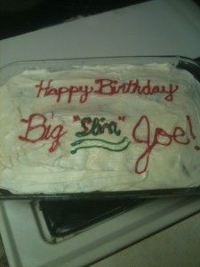 I haven’t had a piece of cake in 6 months.  After being on the Gettin Thin In 2010 plan and losing 80lbs since January 2nd, well today is the day!   Today is my 45th birthday and part of my goal for losing weight this year, was to lose 70 lbs by June 25th, today.  So how bout that cake?  Well take a look…it’s a chocolate cake with creme cheese/fudge frosting and if you’re close by the station this morning, come on by and have a piece!   Thanks to my good friend Miss Shelly for baking this yummy cake.  We’ll also be giving away more of my ” Fat shirts”.  So be sure to tune in at 5:30!  Have a great Mother Lode Weekend!