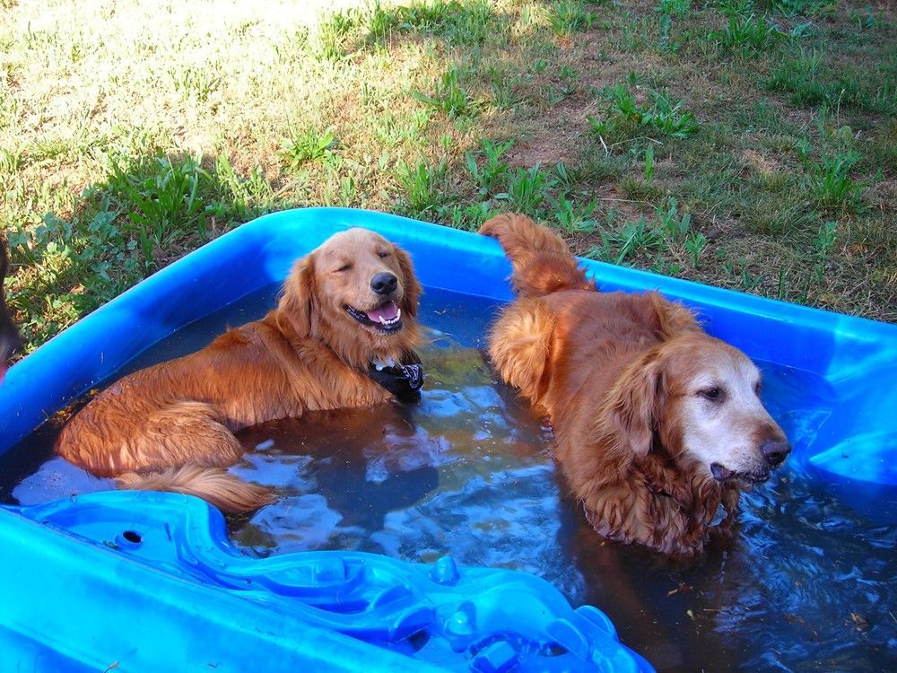 Hi Big Joe and Bridgette! Here’s a really cute picture of Marshall Tucker (L) and Dreyfus (R), our Golden Retrievers. It was taken on Tucker’s first day with us. He came to us from Nor Cal Golden Retriever Rescue, and as soon as he hit the back yard and saw that kiddie pool, he was in it and laying down! The expression on his face is pure doggy joy! Tucker is about 3 years old, and Dreyfus, who was also a rescue 10 years ago, is 13. He loves the pool (and tennis balls) too, God bless him! We hope you’ll pick our sweeties for Pet(s) of the Week! Thanks, Sue and Steve Salnick
