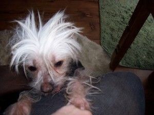 This is “Einstein”   he is a Chinese crested who we drove all the way to Reno to adopt from a rescue, this poor dog lived in a cage all his life and it has taken a long time to gain his trust and to teach him there is more to life then being locked up and being a breeder.   He has the most funny howl/bark when its time to play and he loves attention, don’t get me wrong this little guy protects our home and lets us know when anyone is coming.   Thank you wanda sonora