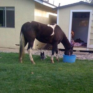 “Diamond Jim is my 11 year old rope horse and Dre is my 1 year old blue heeler. They are both best of friends, they are always together. Jim never minds Dre nipping at his heels, he just ignores his playfulness. They both are a blessing to me and I’m very thankful to have them both. ”