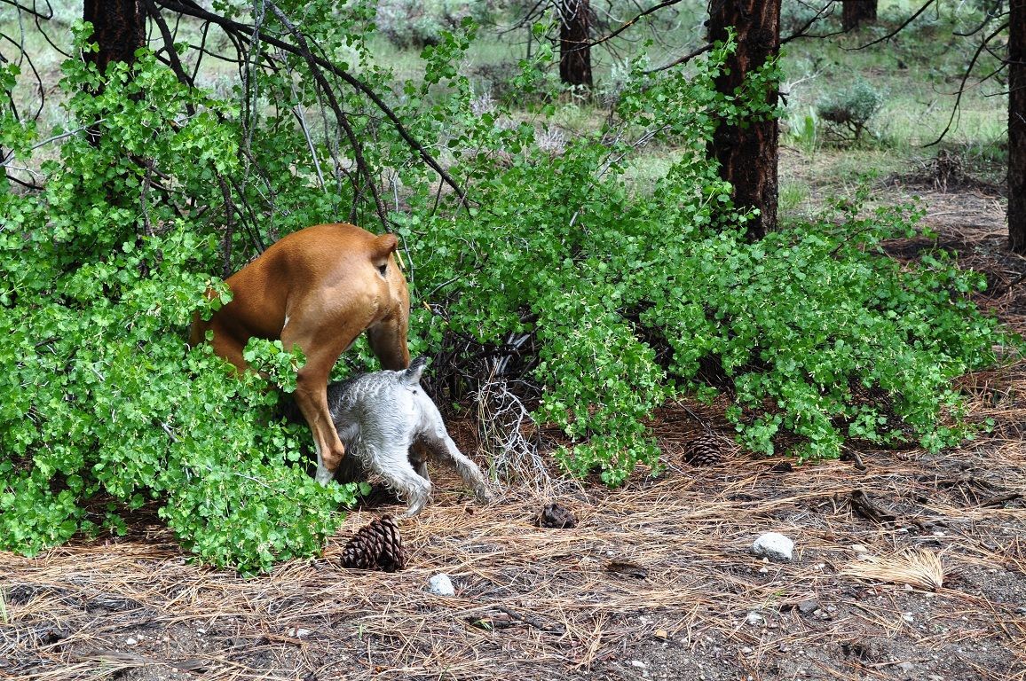 We found this photo to not only be interesting, but very funny! Check out the winners of this week’s KKBN Pet Of The Week Award! Burt and RJ investigating a forest critter