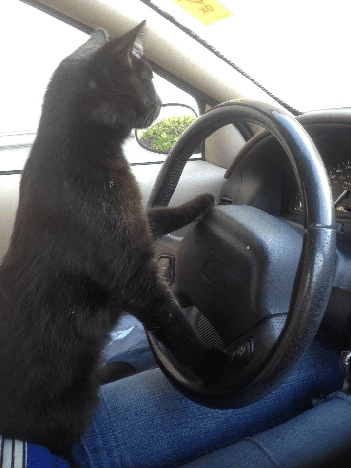 The first photo is my kitty Balem. trying to grab his toy 🙂  and then we have Biscuit driving the family car!