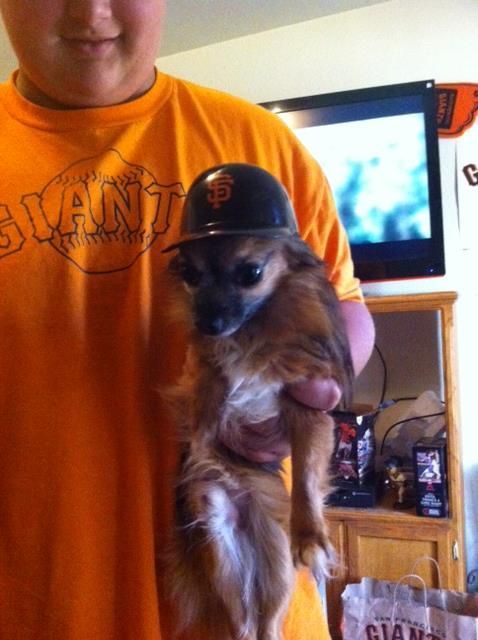 Chewy Robles is a long hair mini chihuahua . He is 5 years old and an SF Giants fan!!! Chewy is a mini tri-color chihuahua from Columbia. She loves to play and chase her tail!!