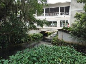 This bed and breakfast inn was built over a swift flowing creek in Crystal River, Florida. The humidity is intense here and the loud sounds of bugs and critters are truly “swamp like”.