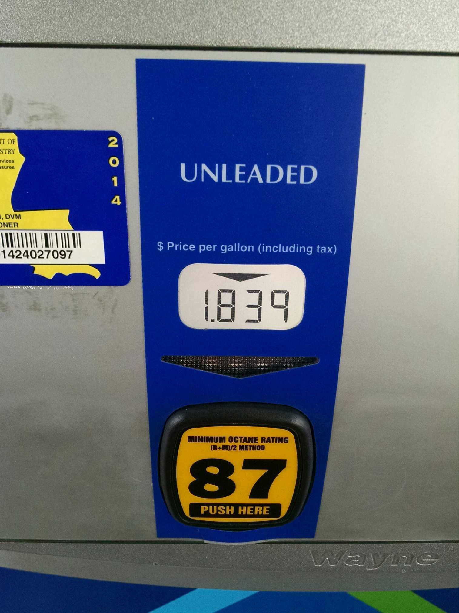 I paid $2.09 and $2.08 a gallon for gas in Florida, $2.10 in Daphne, Alabama and now here was this tremendously cheap price in Louisiana… I’ve become so accustomed to California prices that $1.86 per gallon made me feel like I was stealing this gas.