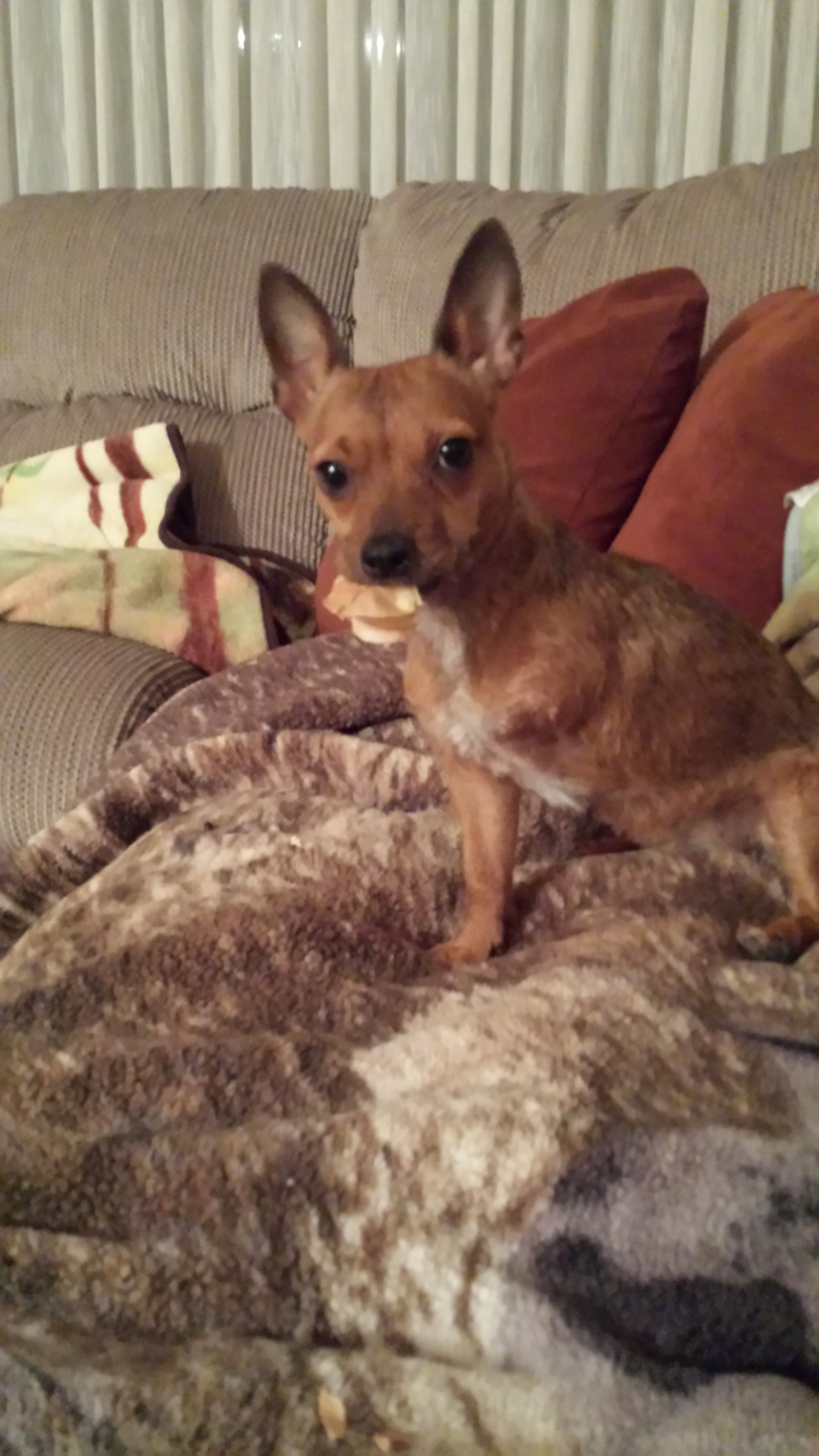 This is Isabelle, one of our rescue dogs. Isabelle lost her leg in a car accident, she is a papa’s girl. After four surgeries, she is the boss of our four male chihuahuas.