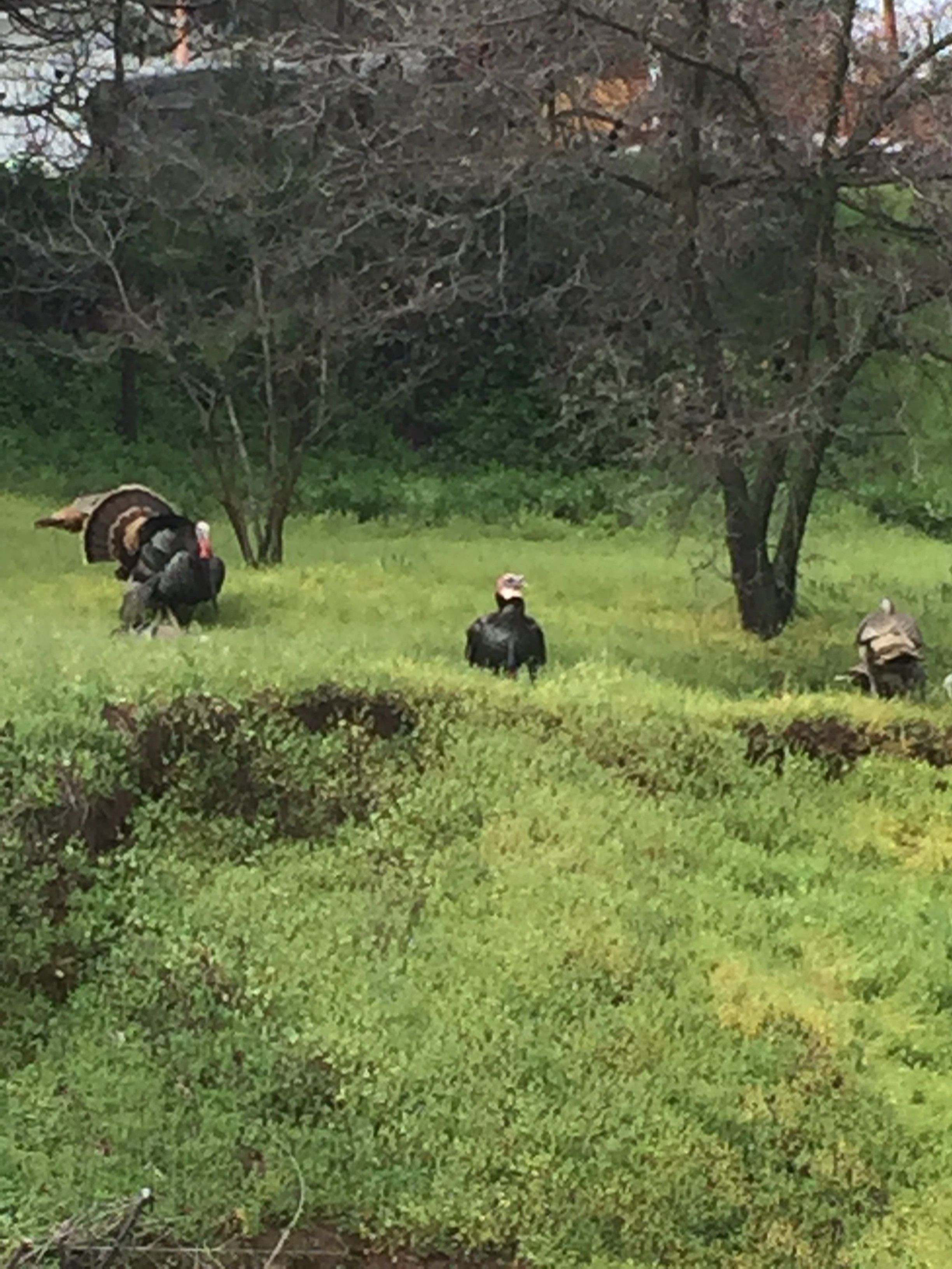 Turkeys in Sonora! Posted on March 16, 2016March 16, 2016 by Bridgette Fanucchi Sonora is such a great place to live. Its nice to be able to walk out to my car after work to wild turkeys up on the hill in our parking lot. (And not the ones that work here!) LOL Posted in Bridgette.