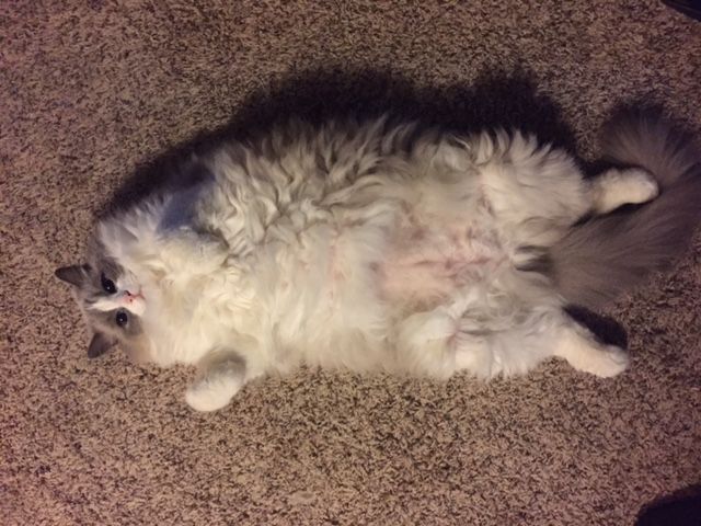 This is Colin. (Not named for the football player) he is a 19 pound 3 year old Ragdoll cat. I got Colin when I was anticipating becoming an empty nester, my youngest was heading to college. Colin’s so lazy and makes me laugh every day with the silly way he sleeps on his back.