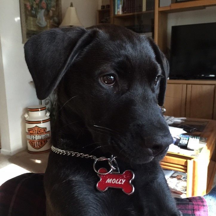 Molly, our 3 ½ months old Lab mix.  Brought her home without clearing it with the wife! Was furious with me, but now a month later I think she loves her more than me!  A wonderful, & pretty much mellow, & VERY smart pup. Has captured both our hearts very quickly! Fetch is her favorite thing to do (besides eating) & we look forward to many years of companionship & loyalty! She will be a Companion dog & has already been to Bethel Retirement Center in Modesto twice where “Gramma” is & did very well & was enjoyed by all she came in contact with!