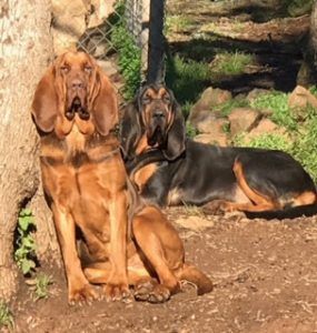 This is a “sunning ” photo of Sadie and Ruby , our resident Bloodhounds, in between storms.
