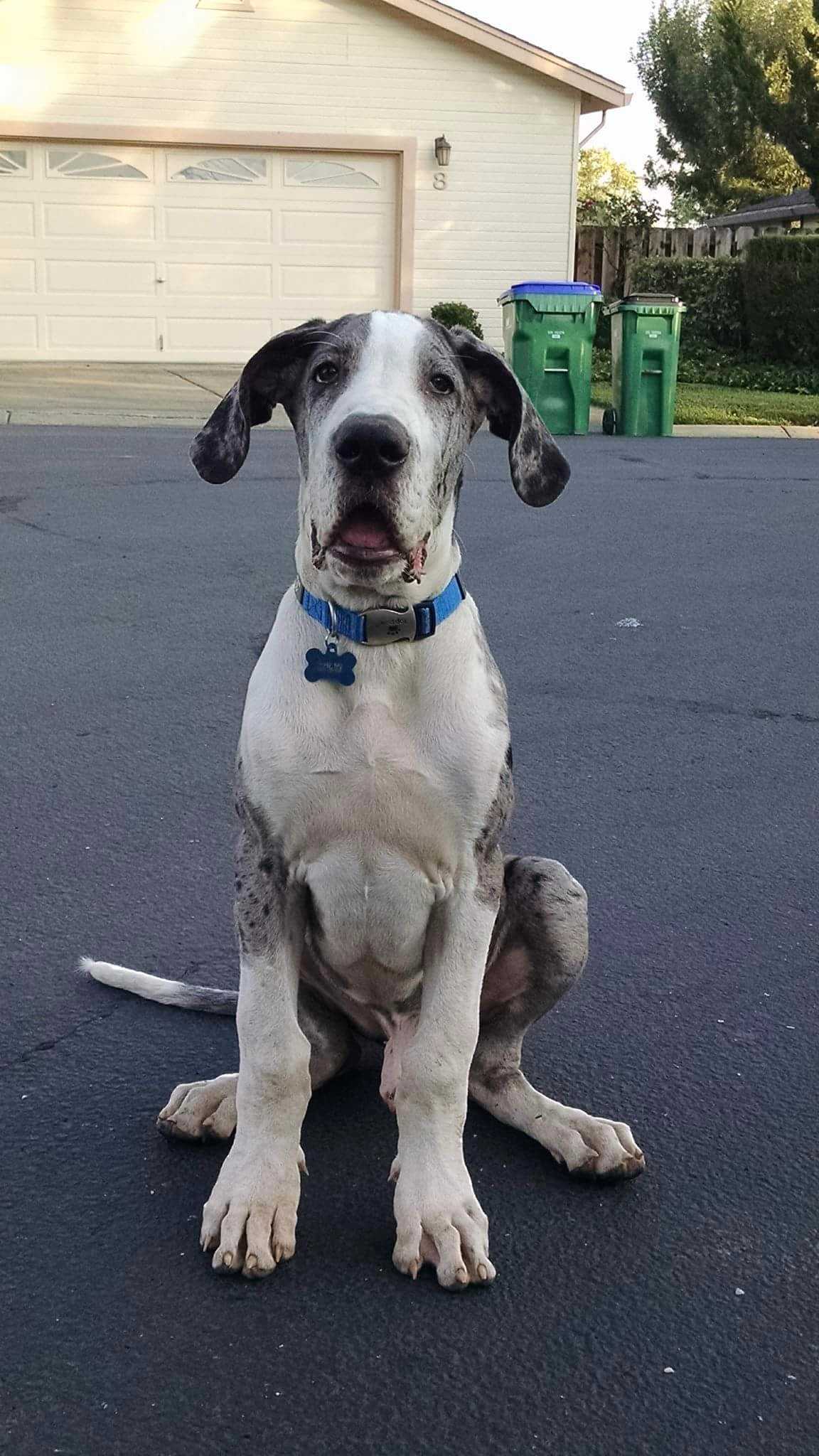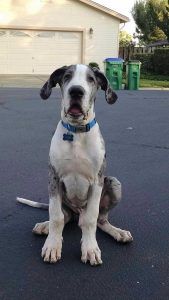 Blu is our 7 month old pure bread great Dane. He is so loving and protective of our 3 year old son Jaxson. He follows me and my boyfriend everywhere and even cuts firewood with us. He loves playing with the baby cows on our property. He’s definitely part of the family. We call him “the big horse”. His favorite thing in the world is drooling and leaning on you. He’s our big giant lap dog. They don’t call them “great” danes for nothing. He was born a gentle giant and I wouldn’t want any other dog to grow up with our son.