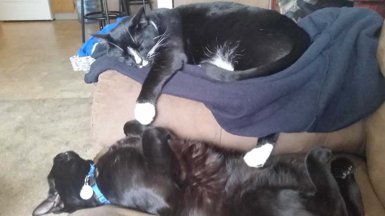 These two handsome young men are Milk stain and Twitch. Both are rescues, Milk stain (the tubby black and white) i have had since he was 6 weeks old and Twitch (the small black one) since he was 2 1/2 months old. They both love to cuddle with my fiancé and I and are absolute love bugs. They have the best personality and are so different, but we love them both so much. They have stick together thru thick and thin even with the devastating loss of my long time best friend Oreo who passed away last year on November 8th, 2016 at the age of 15. She mothered both boys, it was just her nature to love and mother everything and everyone and they were devastated like the rest of us for months. But with their constant love and cuddles we able to overcome the heartbreak. So is like to nominate these two amazing felines for the pet of the week award!