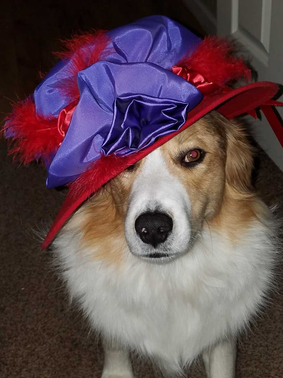 Representing the red hat ladies of Tuolumne co. And ready for Easter 😉 my Dozer is amazing, he not only is my savior but my best friend, I was diagnosed with MS in 2014 and he has truly helped me through my struggle.. PLEASE choose him for pet of the WEEK;)