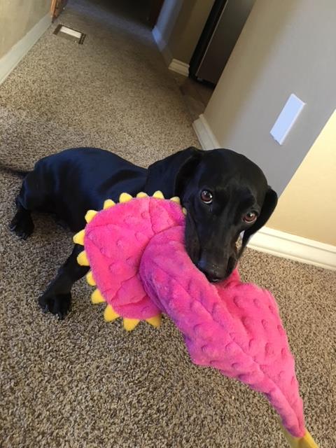 Hi this is Shorty she’s a beautiful black lab and dachshund mix. She loves cats. She also loves her toys also know as baby’s. She’s so cute and always happy.