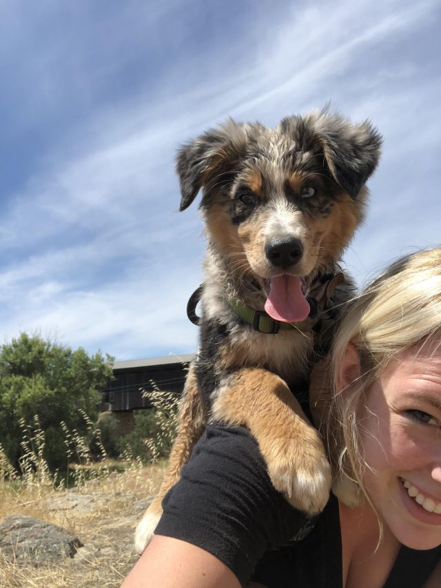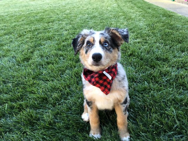 This is Goose. Born March 18, 2018 in a litter of 6. An 11 week old trimerle border collie/australian shepherd mix. He has one blue and one brown eye, is very charismatic, and happy all the time. His personality is bigger than he is. So far he loves hiking, the beach, chewing on just about everything, tug of war, and his parents (me) Sadie and Dalton. He is a very smart dog and knows sit, lay down, and is working on roll over and shake. And to add, he loves sitting on people’s shoulders! Maybe he’s dreaming of being a parent. We’re not sure lol A fun fact is that he has an instagram by the name of@goose_theaussie. We would love for him to be pet of the week! Thank you!