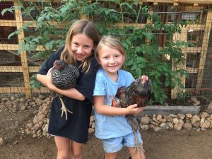 These are our chickens. Their names are Willow and Dixie. They are four months old. They are the nicest of our five chickens and let us pick them up.