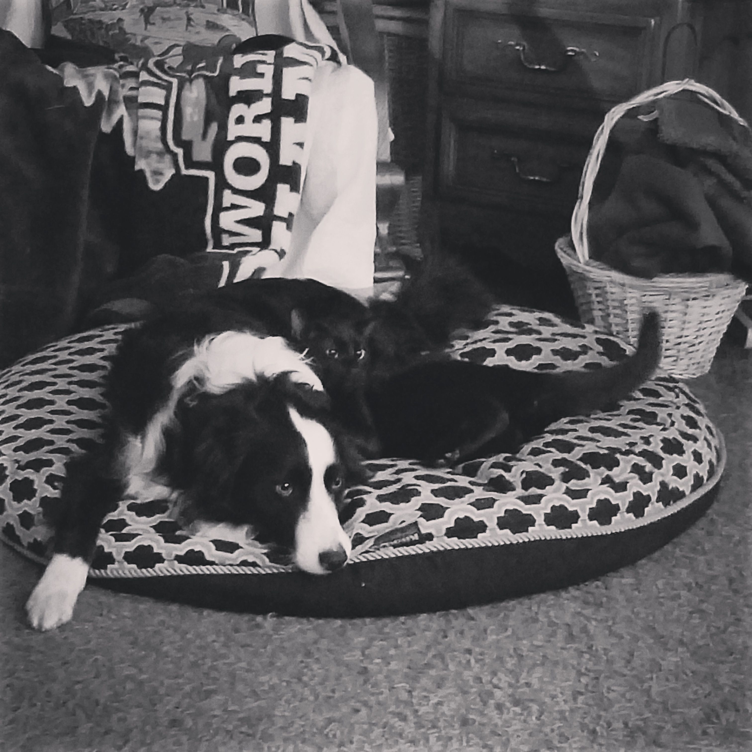 Winnie (Border Collie, 1.5 years old) and Hoss (Black Cat, 8 months old)