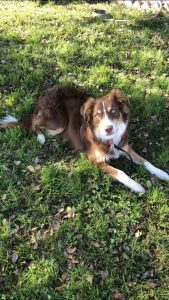 Snickers is my side kick. We go on adventures together, exploring California’s nature and hanging out with other dogs. When we are at home Snickers loves learning new tricks. He knows eight tricks so far but his favorite is “bang bang” which is play dead. He loves kick ball, fetch, find it, tug and swimming.