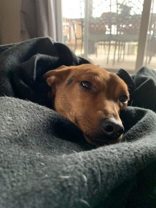 When first adopted, she was this pint-sized quiet pup. Years later she’s a full-sized stubborn weenie dog! Those ears never rest, and the tail is constantly wagging. Milo is known to go a little crazy for a ball…. she doesn’t enjoy baths, but she’s my best little pal.