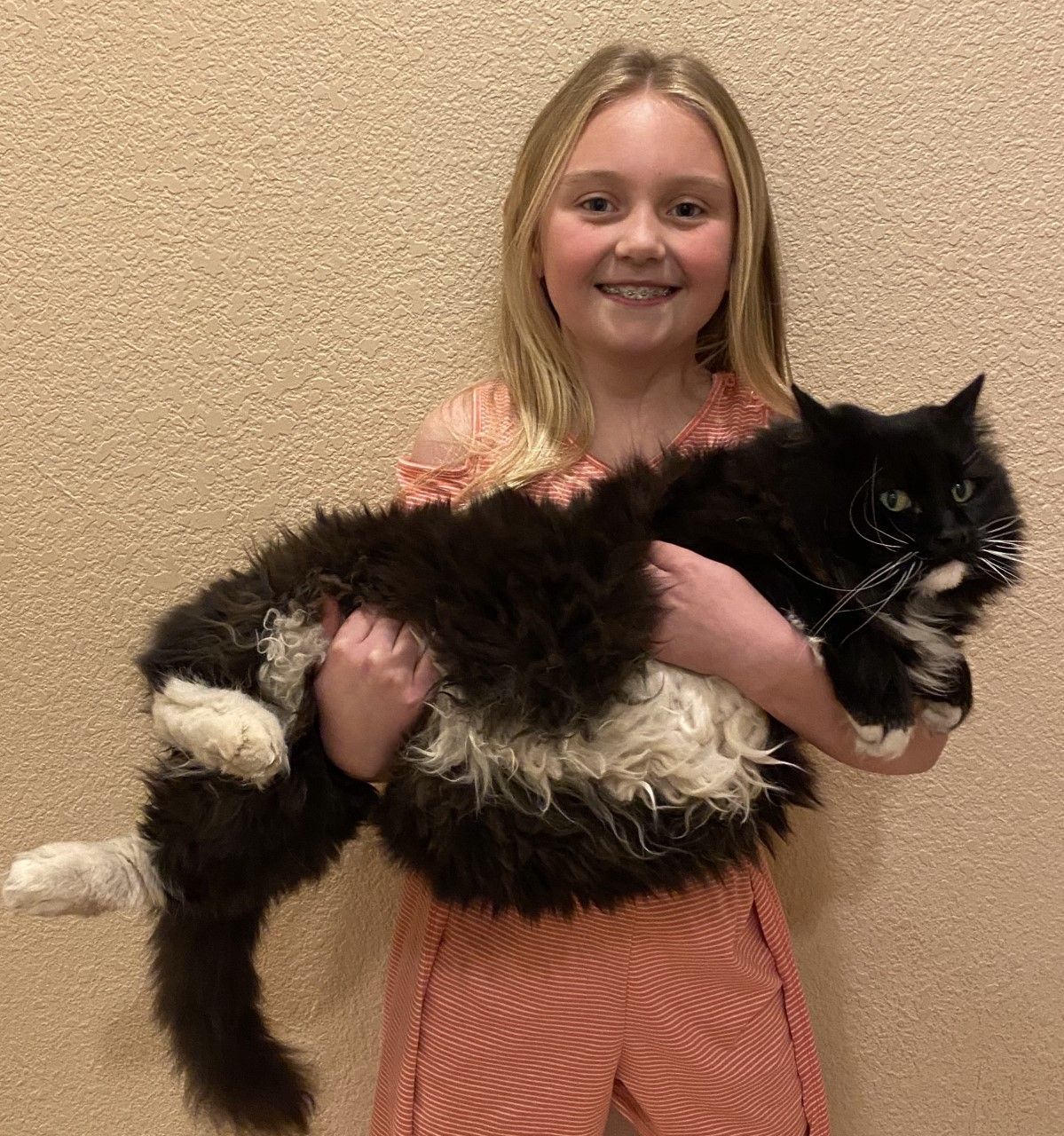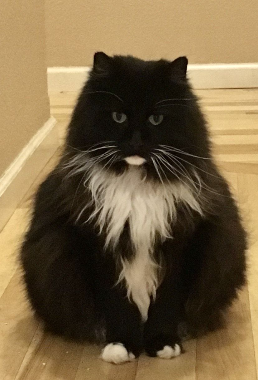 He was rescued from the side of a freeway when he was a kitten and he has been a BIG part of our family ever since (pun intended).