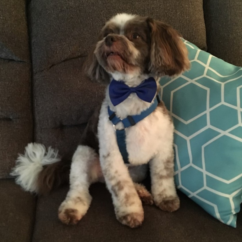 He is a Havanese. He loves to cuddle and wear bow ties, he wears a different one every week!