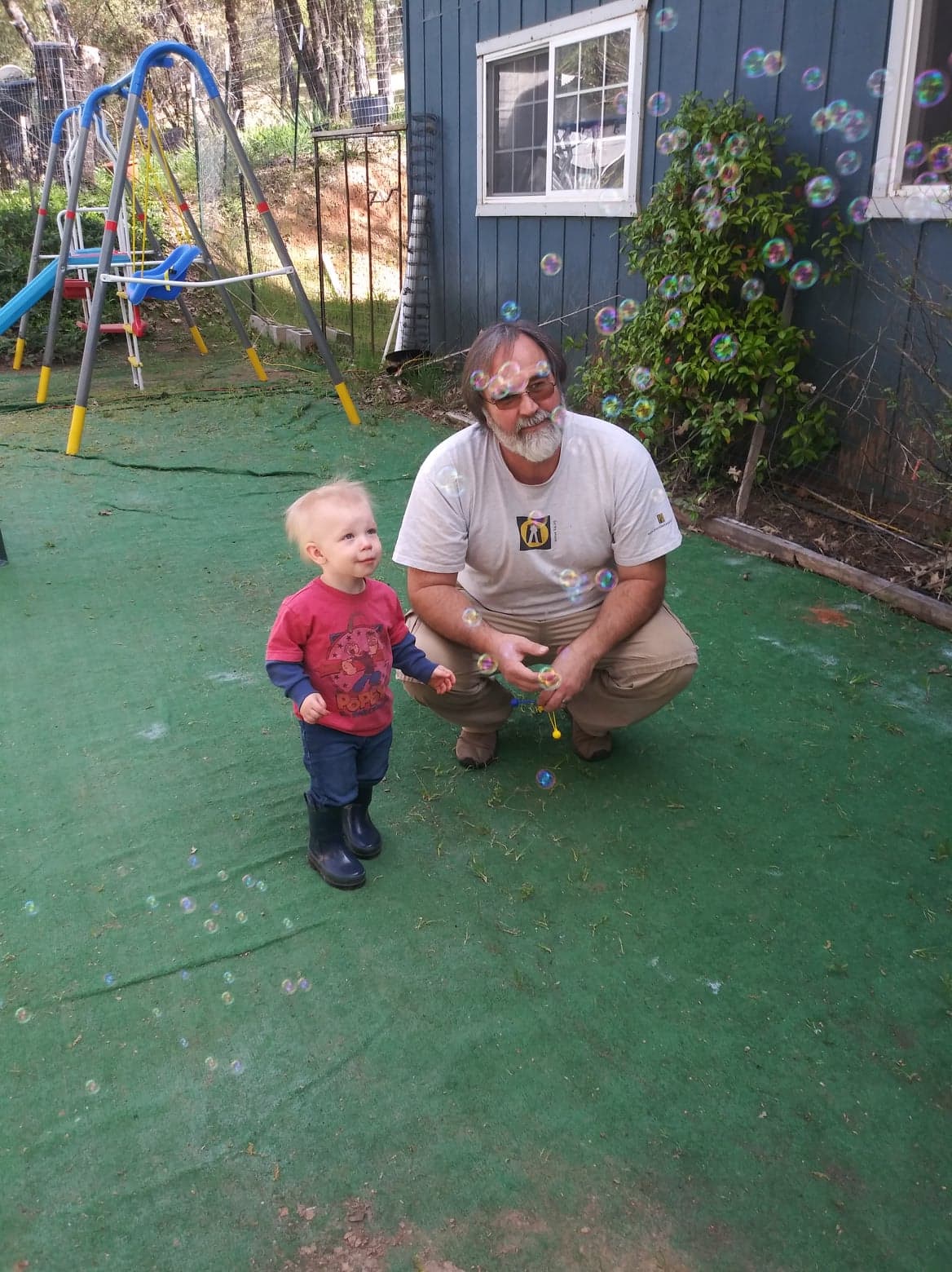 He works all day and comes home to play running up and down the hall chasing his 2-year-old grandson.