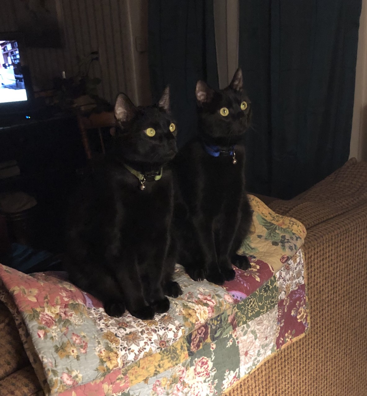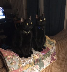 They always greet me at the door…on top of their cat tree, they hang upside down and reach out with love taps.