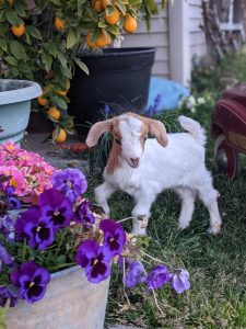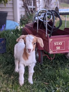 At three weeks old, we decided he was doing so good and took him to join the other baby goats in the goat shed. He is still way smaller than them but he’s adjusting well to normal goat life and I am confident that he will do just fine!