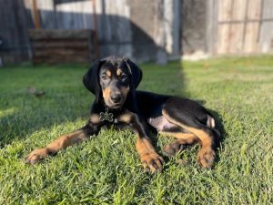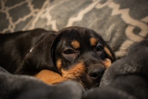 I’m a 2 month old tan and black hound.