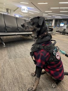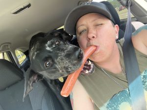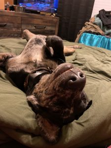 Clementine is my year-old Catahoula and she is a registered service dog. She can detect my seizures and will put her body under my head. She helps with my PTSD that I have from the military by laying on my chest when I have my anxiety and panic attacks. She even reminds me to take my medicine in the morning. She has been a phenomenal dog and has learned so fast. She goes everywhere with me, from plane rides to road tripping across the entire United States, to the ranch and on trail rides. She is one of the best dogs anybody could’ve ever asked for.