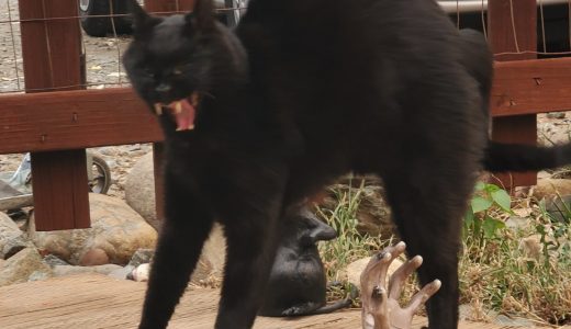 This is our cat Blackie! I got a picture at the right moment! Look at them teeth!