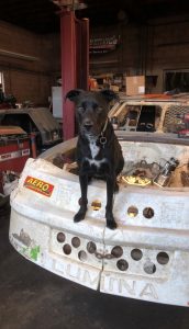 He has the toughest job ever, greeting customers at Jim’s Automotive, with a wag of his tail and happy yips. If you give him a little attention, he’ll gladly stay by your side through your whole visit. He always there to put a smile on your face, no matter how bad of a day you’re having!