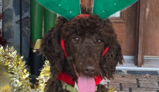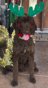 Olive (the other reindeer) is a 1- & 1/2-year-old standard poodle. Her favorite pastime is chasing the cat, cuddling, and loves to play reindeer games.