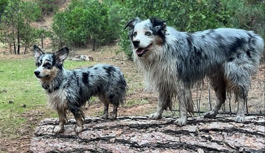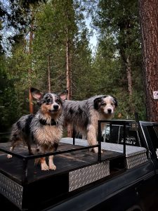 Tucker is a 9 year old Australian shepherd and Toby a 1 1/2 year old is a toy Aussie/corgi mix. They are the best brothers and get along so great! They love riding in dads truck and running around free in the forest and dirt roads of the mountains. We could not have been luckier.