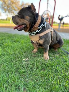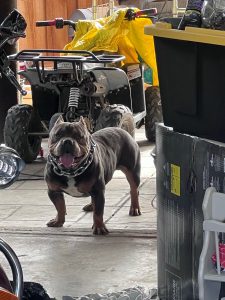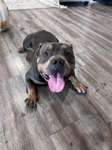 Hello this is Brutus, he’s 2 years old. He’s looks like a bully . But don’t let this big ol teddy bear full you. He is full of love , my 5,7,11 year olds love him and are best friends!! We swear Brutus was human at one point. This dog is so smart ! loves the kids so much he found a way to open are patio French doors . To come inside the house just to find him snuggled up in the rooms with the kids!