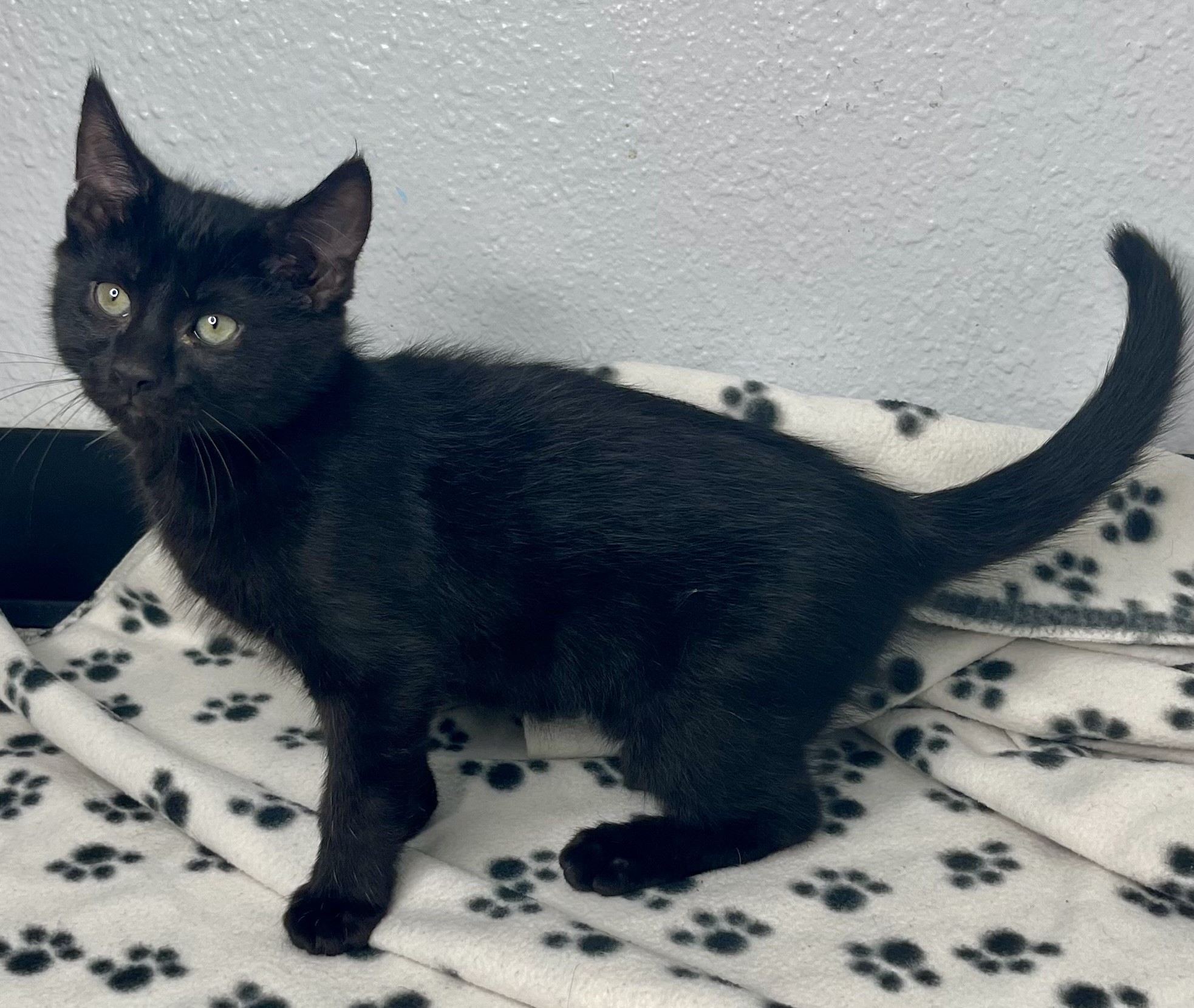 Nacho: 3 month old, Male, Domestic Shorthair Nacho was born on 3/26/24 with his brothers and sisters. Many have been adopted, but Nacho still waits! Nacho is very curious about the world and loves to “chatter” and chase his toys. When he’s not exploring, you can find him cuddled up with his siblings. Come by and meet him!
