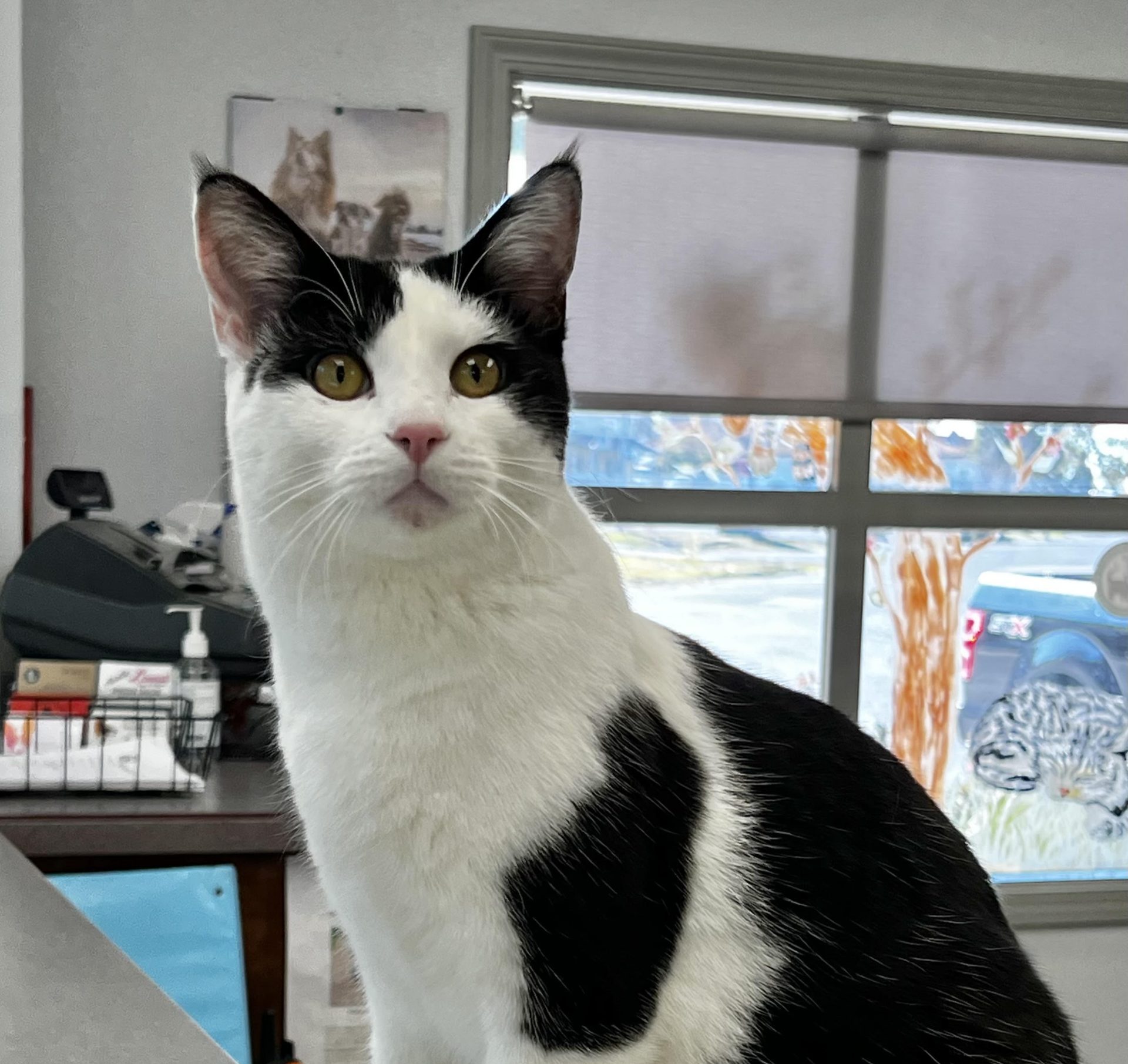 Linus: 10 months old, Male, Domestic Shorthair, 9 pounds Linus has spent time in a foster home and roams our shelter lobby, so we’ve learned that he can get along with many other cats of different ages and personalities, but can be very unsure of dogs and may do best in a home without dogs or a very mellow dog that will ignore him. He’s very affectionate and social, and might do okay with kids, too! Linus would love a home where he can run around, play, and be his goofy (and sometimes clumsy) self. He loves to explore cat trees, play in tunnels, and chase string toys, so an active home that provides plenty of play opportunities, but also a nice lap to snuggle up on would be ideal. We’ve also learned that Linus can be quite the talker, so be ready to chat with this handsome boy!