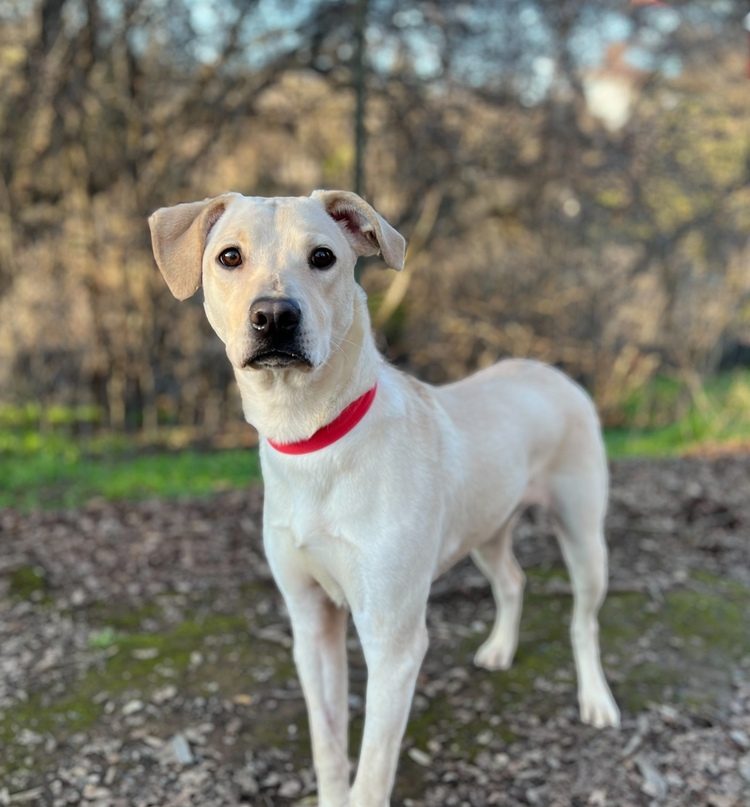 Mellie: 1 year old, Female, Labrador Retriever mix, 45 pounds Mellie is a sweet, gentle girl who can be a little shy in new situations, but once she feels safe her playful, goofy personality shines through. Mellie loves playing with other dogs and recently met children who she did great with, making her a good candidate for those looking for a family dog. With a little patience and a lot of love, Mellie will be your new best friend!