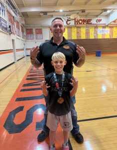 By trade, he is a heavy equipment mechanic at SPI — A physically demanding job that he does without complaint to provide for us. However, what makes Travis truly special is what he does in his “free” time. Instead of resting, he devotes himself to spending time with his kids and coaching the youth in our community. Whether it’s coaching football for the Jr Cats, on the wrestling mat with the Motherlode Wrestling Club, or springtime on the baseball field, he’s always there for not only his kids, but many others around the community.