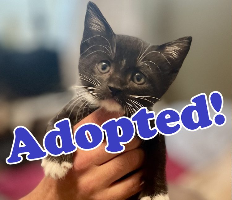 Ducky: 2 month old, Female, Domestic Shorthair Tuxedo What’s not to love about Ducky? This little kitten is all love and spunk. She was raised as a bottle baby by her foster mom, so she’s been exposed to life in a home along with other dogs and cats. Ducky is social, loving, and curious- the perfect blend for any household. Expect this girl to explore, play, and be a wonderful member of the family!
