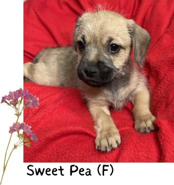 Sweetpea’s four other cutie patooty siblings have been adopted. They were all born on January 23rd, 2024. Their mother is a small Terrier mix, but we suspect their dad was a larger breed. These puppies are expected to be medium sized, and are so much fun! They love to play, are very social, and will take on the day with vigor.