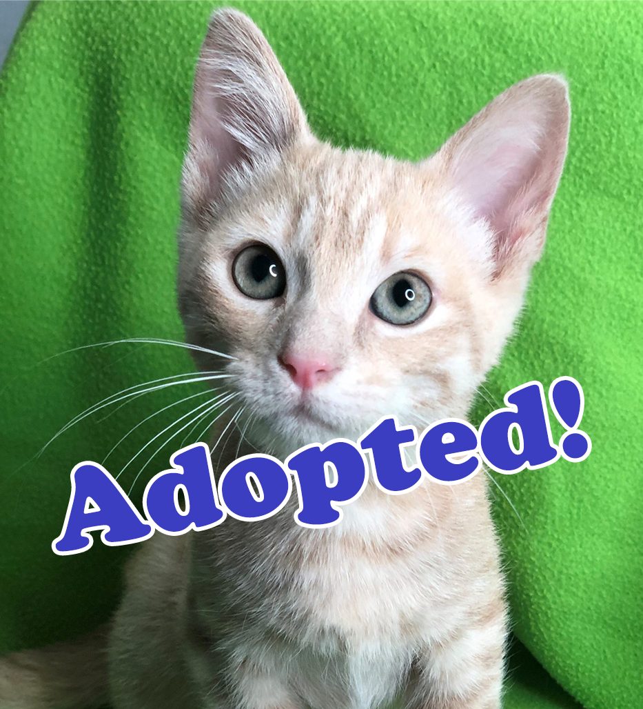 Toast: 3 month old, Male, Domestic Shorthair, 3lbs Toast is playful, outgoing, and loves doing all the crazy kitten flips and tricks. Be sure to have plenty of toys for this baby. He’s ready to play! Toast loves exploring the lobby and keeping all the other cats on their toes, so you’ll be sure to see him if you stop by.